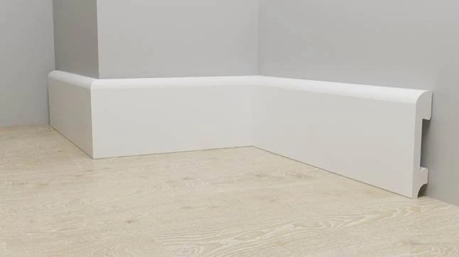 Все плинтуса отличаются по размеру. Как правило длина у них стандартная 2,5 м, а вот ширина вирируется от совсем тонких 6 см до широких 30 см и выше. Как правило деревянные плинтуса тоньше, чем ПВХ, которые должны вместить все провода. Чаще всего выбирают модели 10-12 см, а вот более высокие уже в зависимости от дизайна.