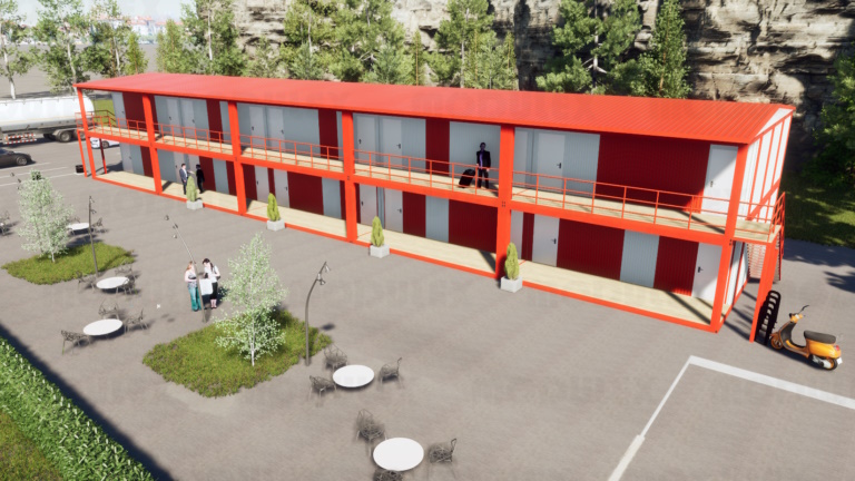 Модульний готель розрахований на комфортне тривале проживання. У його структуру входять: